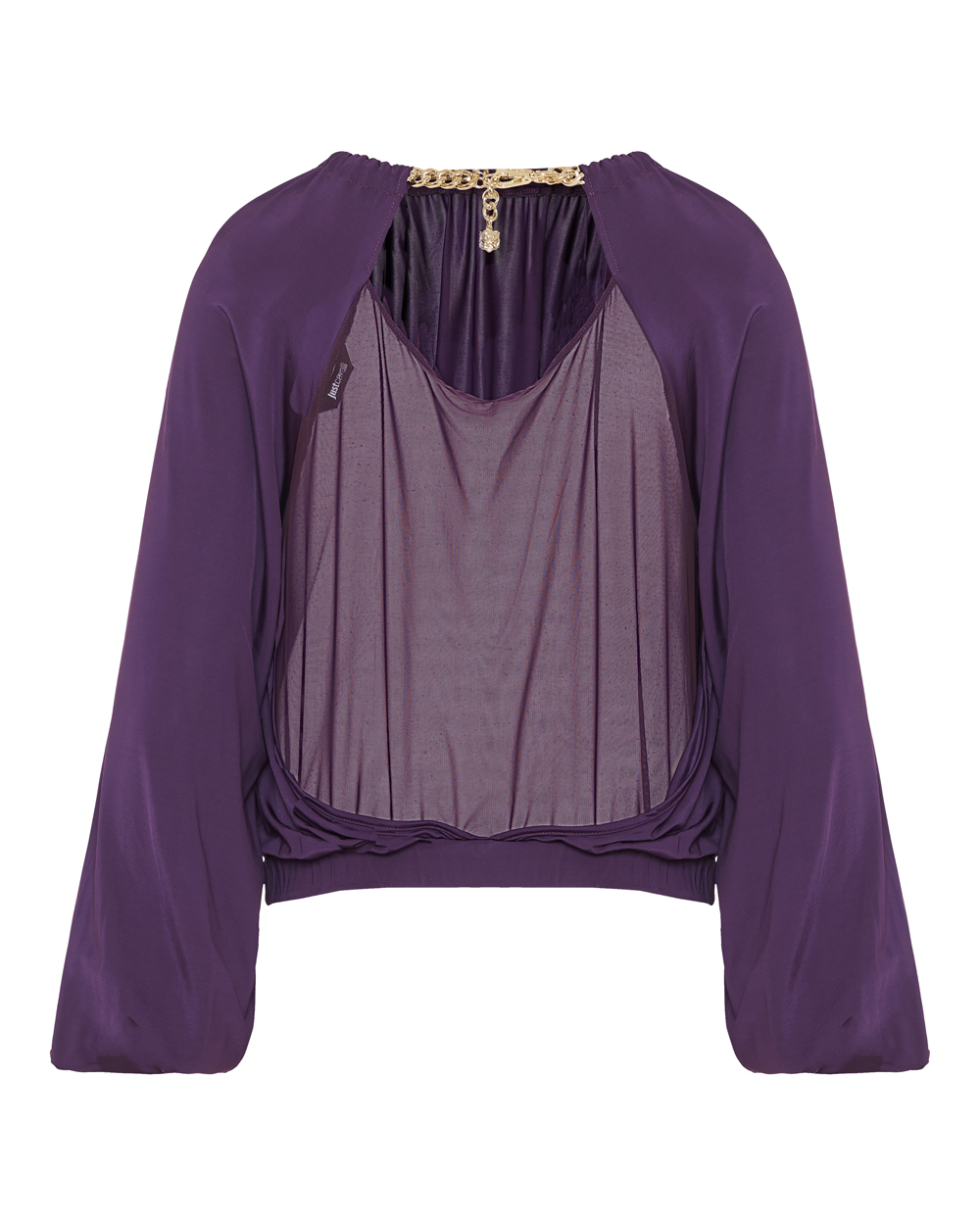 Just Cavalli γυναικεία μπλούζα μονόχρωμη με διακοσμητική αλυσίδα και διαφάνεια πίσω